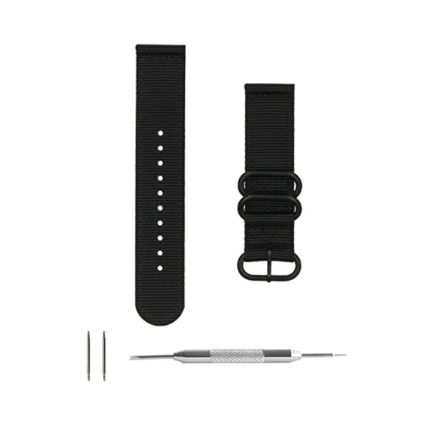 Versatile Zulu-Style Strap – All the style of a rugged Zulu watch band but in a versatile 2-piece design that is compatible with most regular and smart watches. The breathable ballistic nylon strap has color- matched stitching and stainless-steel hardware that complements any watch.
