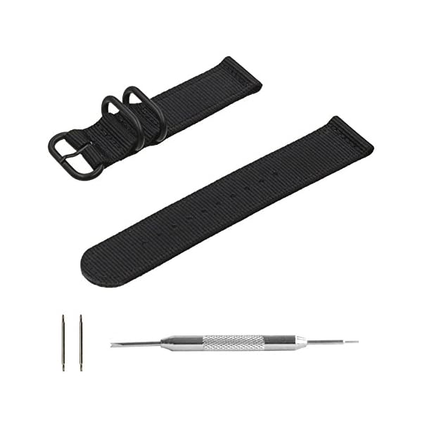 High-Quality Construction – 2.4mm double-layer ballistic nylon watch band starts out stiff, but quickly molds to your wrist. Each watch strap is fitted with a brushed stainless-steel buckle and keeper loops. Heat-sealed edges resist fraying for extra durability.