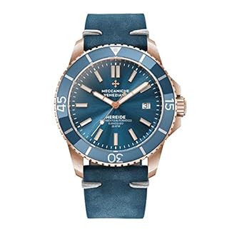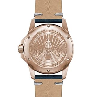 42mm X 14mm 5N Rose Gold PVD 316L Stainless Steel Case – Deep Satin Finish – Decorated Case Back – Blue Unidirectional rotatable (120 clicks) Bezel with BK7 Crystal Insert – Antireflective Domed Sapphire Glass Crystal