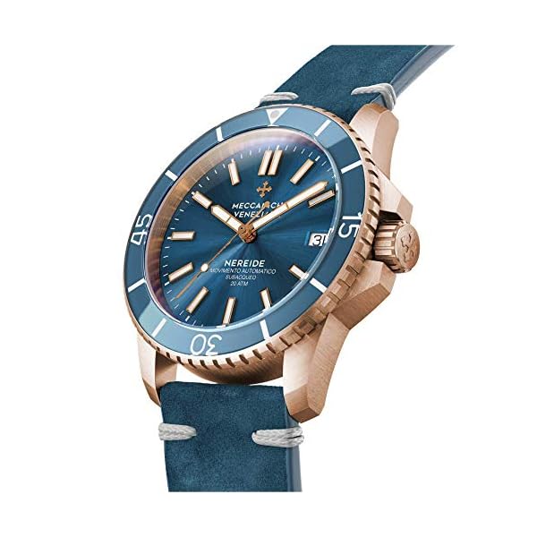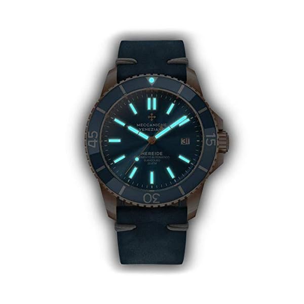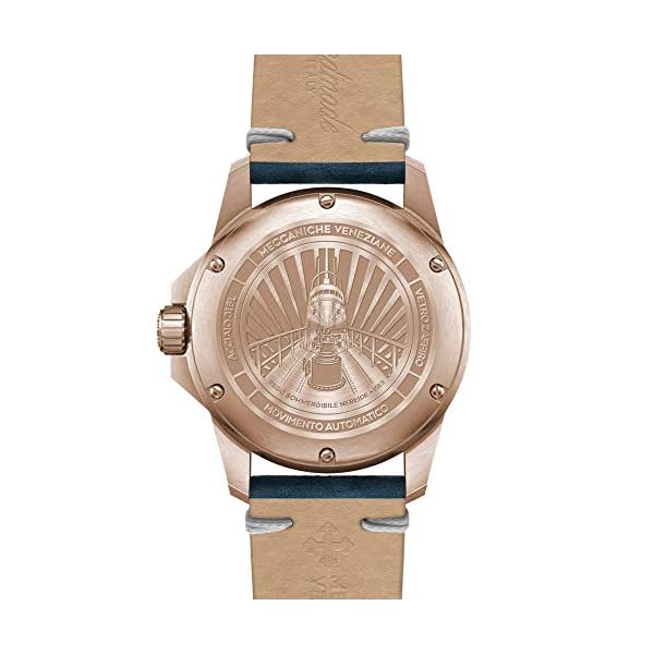Automatic Self Winding Movement CAL.MV145 (undecorated version) with 24 Jewels – 21.600 bph, and a power reserve of 41 hours. The MV145 movement, developed from a Seiko NH35 base, is a caliber of unquestionable reliability, it has many other functions such as bi-directional winding and hacking seconds.