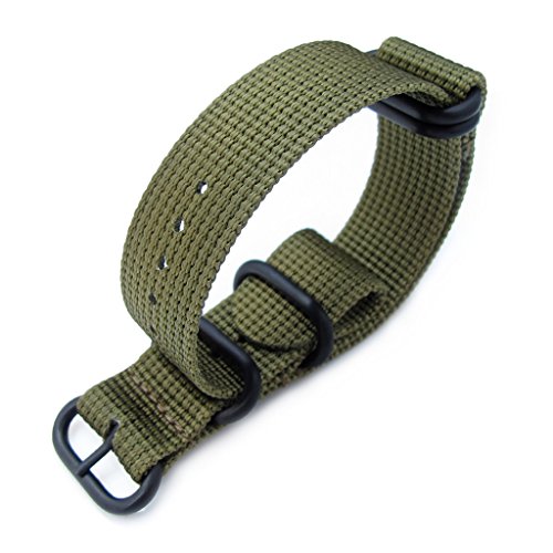 MiLTAT Zulu 5 rings military watch strap was made from double thickness high density 3D woven nylon. These nylon threads were treated for water repellent coating prior to weaving. Strap approximate 1.4mm thick, tight up with five 316L stainless steel ring. Look excellent on military or classic-looking dive watches. Nylon is cut and simultaneously sealed using ultrasonic knives to prevent fraying.