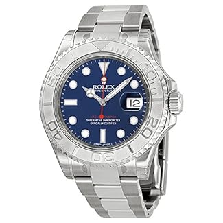 Grey rolesium (combination steel and platinum) case with a silver-tone stainless steel rolex oyster bracelet. Bi-directional rotating time-lapse white platinum bezel. Blue dial with luminous silver-tone Mercedes-logo, sword, and Breguet-style shape hands and dot hour markers. Minute markers around the outer rim. Dial Type: Analog. Luminescent hands and markers. Date display at the 3 o’clock position. Rolex Calibre 3135 automatic movement with a 50-hour power reserve. Scratch resistant sapphire crystal. Screw down crown. Solid case back. Round case shape, case size: 40 mm, case thickness: 13 mm. Band width: 18 mm, band length: 8 inches. Oysterlock clasp. Water resistant at 100 meters / 330 feet. Functions: date, hour, minute, second, chronometer. Luxury watch style. Watch label: Swiss Made. Rolex Yacht-Master 40 Automatic Blue Dial Stainless Steel Oyster Bracelet Men’s Watch 116622BLSO.