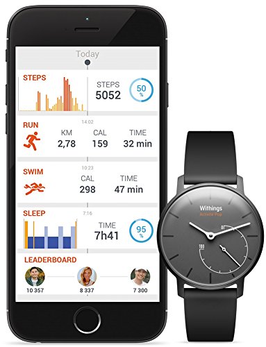 Activity Tracking: Steps, distance, running and calories burned Sleep Monitoring: Sleep cycle analysis (light and deep sleep) Silent Alarm to start your day with a gentle wake-up vibration Fun-to-wear materials: Activite Pop’s design extends across the PVD-coated watch case and the smooth silicone watch strap Free Health Mate app for real-time coaching Battery Life: No need to charge Activite Pop, the button cell battery offers up to 8 months autonomy